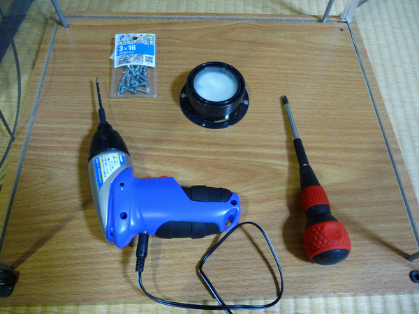電動ドリル(2,980円)と直径3mm長さ16mmのネジを購入。